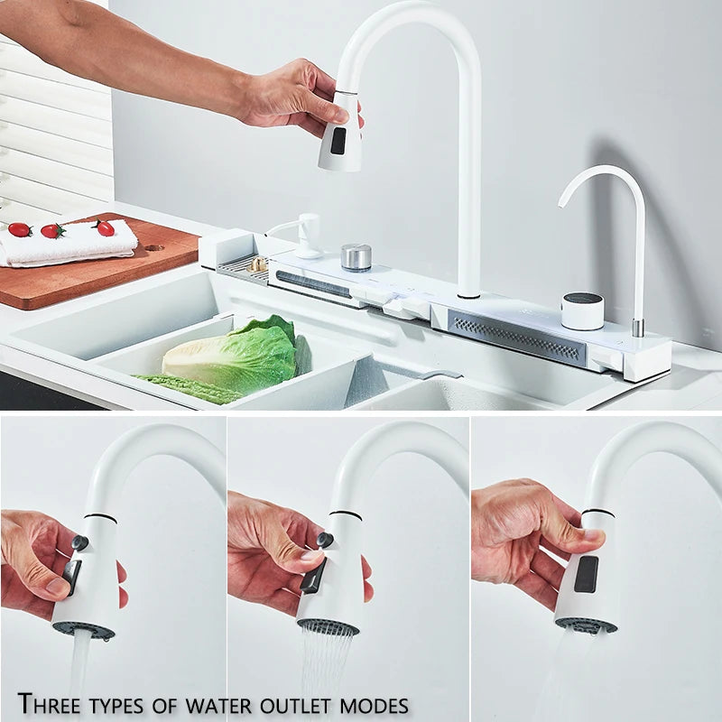 🍽️ Moderni stačiakampė nerūdijančio plieno virtuvės kriauklė su skaitmeniniu ekranu ir maišytuvu